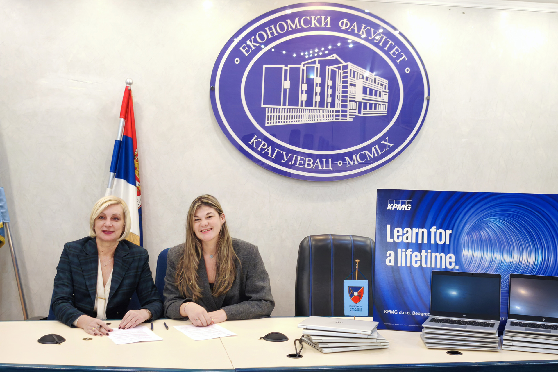 У понедељак, 8. 12. 2025. године, потписан је уговор о донацији између друштва за ревизију KPMG из Београда и Економског факултета у Крагујевцу. Уговором је предвиђена донација 30 лаптопова Економском факултету у Крагујевцу. Реч је о изузетно вредној и значајној донацији за наш факултет, која ће нам омогућити да унапредимо квалитет наставног процеса.